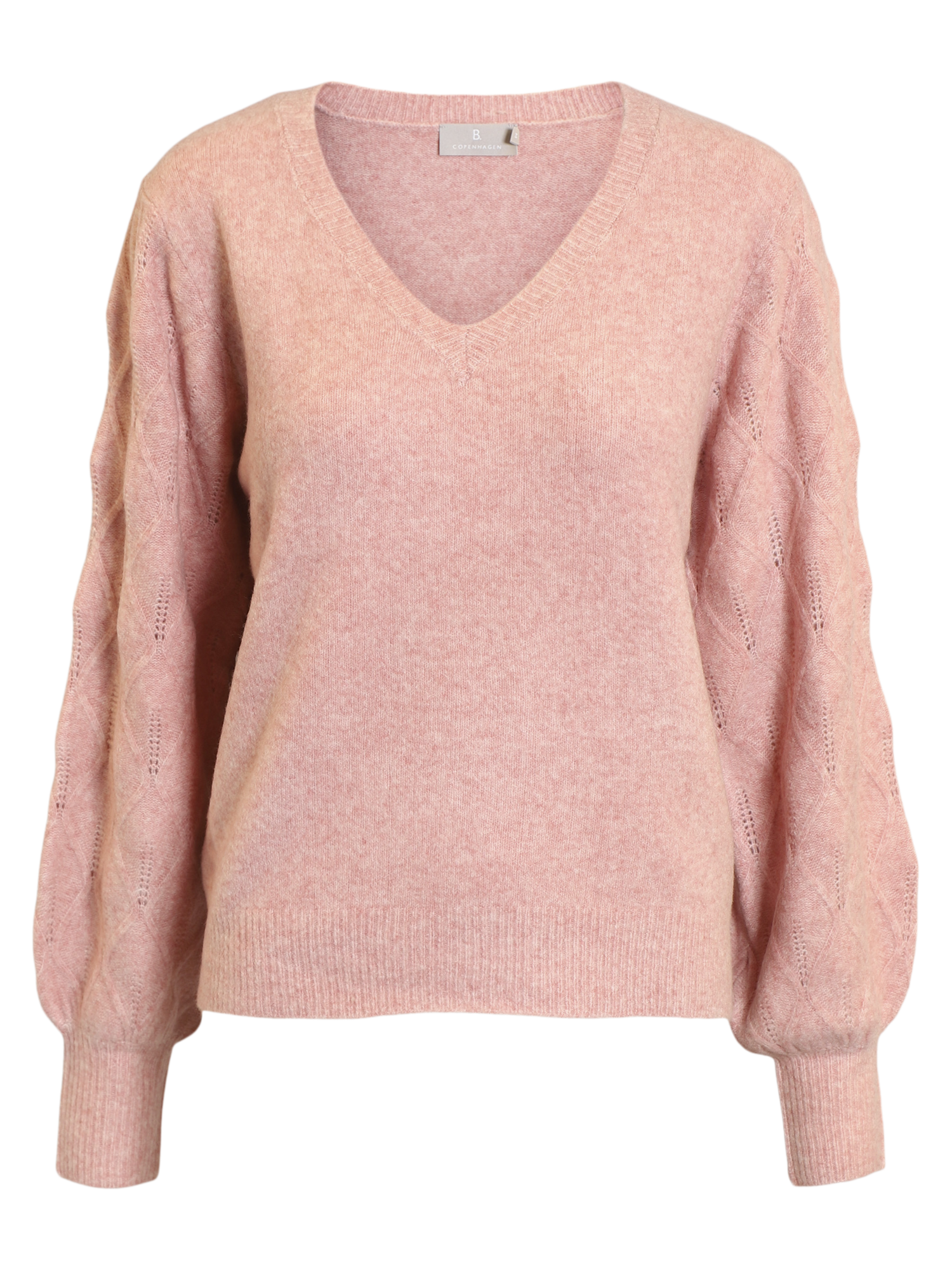 De blouse is van een zeer zachte en exquise kwaliteit. Het bevat zowel katoen als wol, waardoor het comfortabel is om te dragen en een aangename temperatuur te behouden. De voor- en achterkant zijn gebreid in tricotsteek en de mouwen hebben een mooi patroon en iets oversized effect.